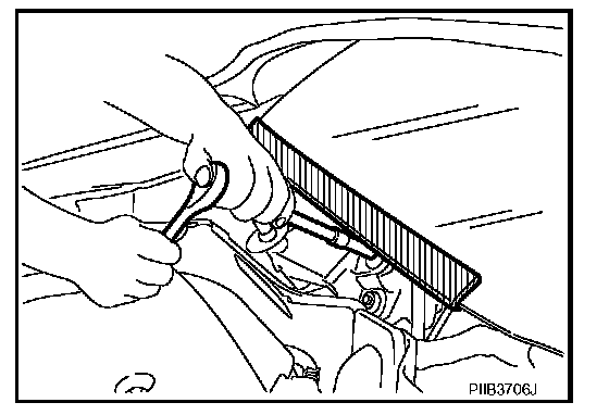 When performing the procedure after removing cowl top cover, cover the lower end of windshield with urethane, etc.