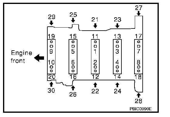 Tighten main bearing cap sub bolt (M9) in order of 11 to 20.