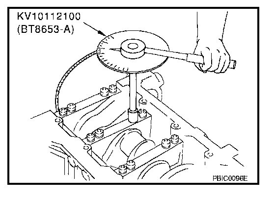 Tighten main bearing cap bolt (M12) to 40 degrees clockwise in order of 1 to 10. (angle tightening)