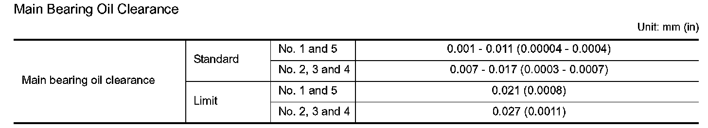 Main Bearing Oil Clearance