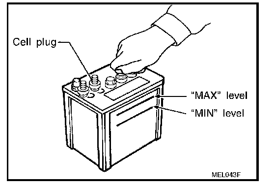 CHECKING ELECTROLYTE LEVELWARNING: Never allow battery fluid to come in contact with skin, eyes, fabrics, or painted surfaces. After touching a battery, never touch or rub your eyes until you have thoroughly washed your hands. If acid contacts eyes, skin or clothing, immediately flush with water for 15 minutes and seek medical attention.