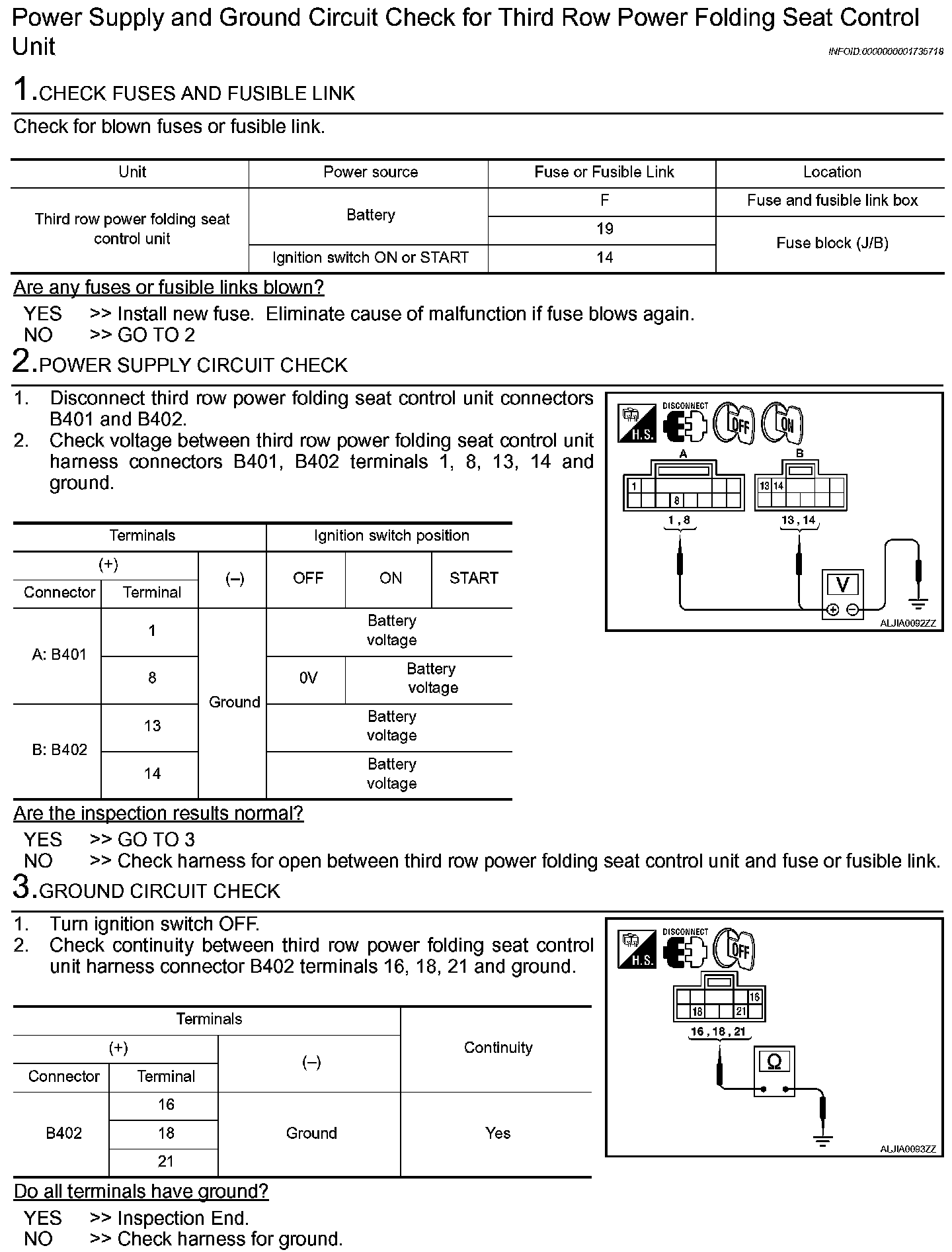 Power Supply and Ground Circuit Check for Third Row Power Folding Seat Control Unit