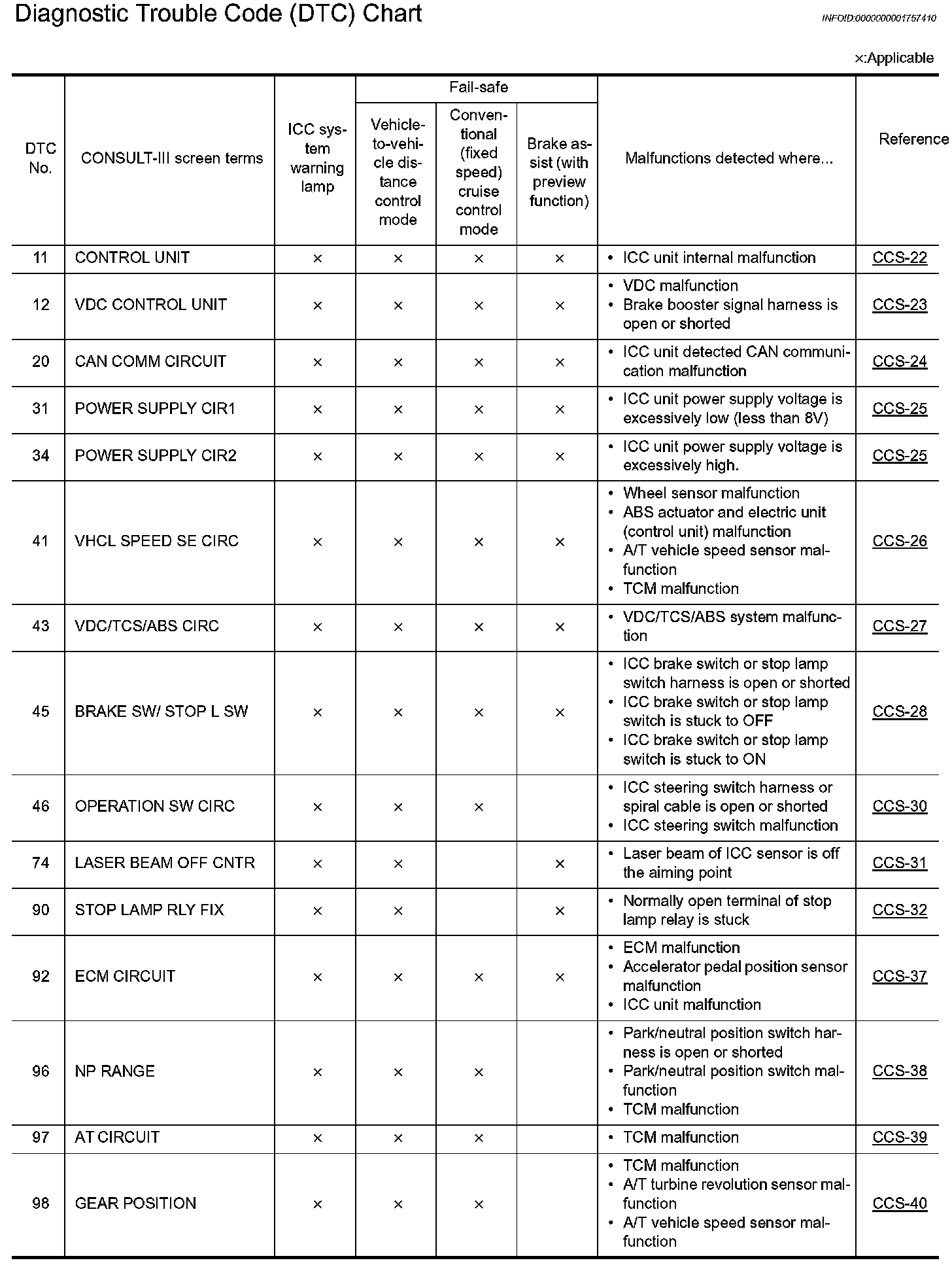 Diagnostic Trouble Code (DTC) Chart (Part 1):
