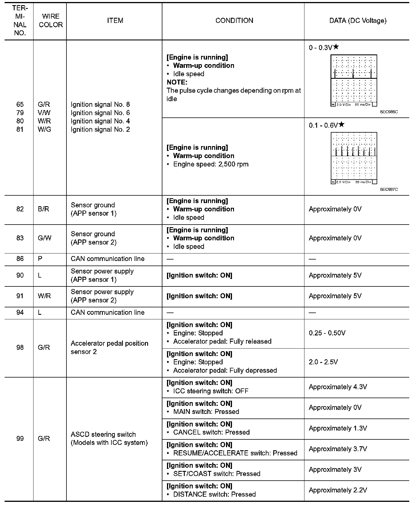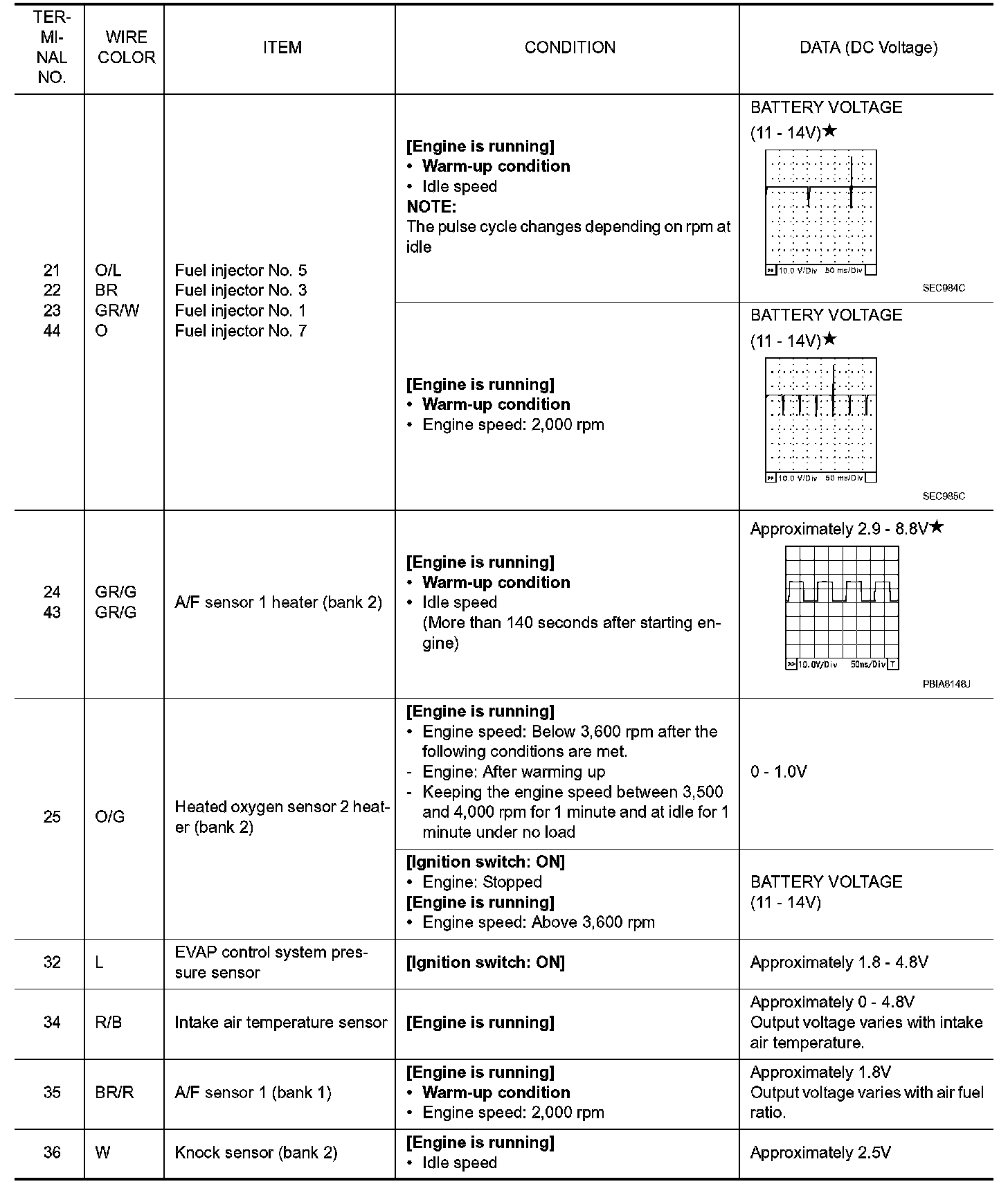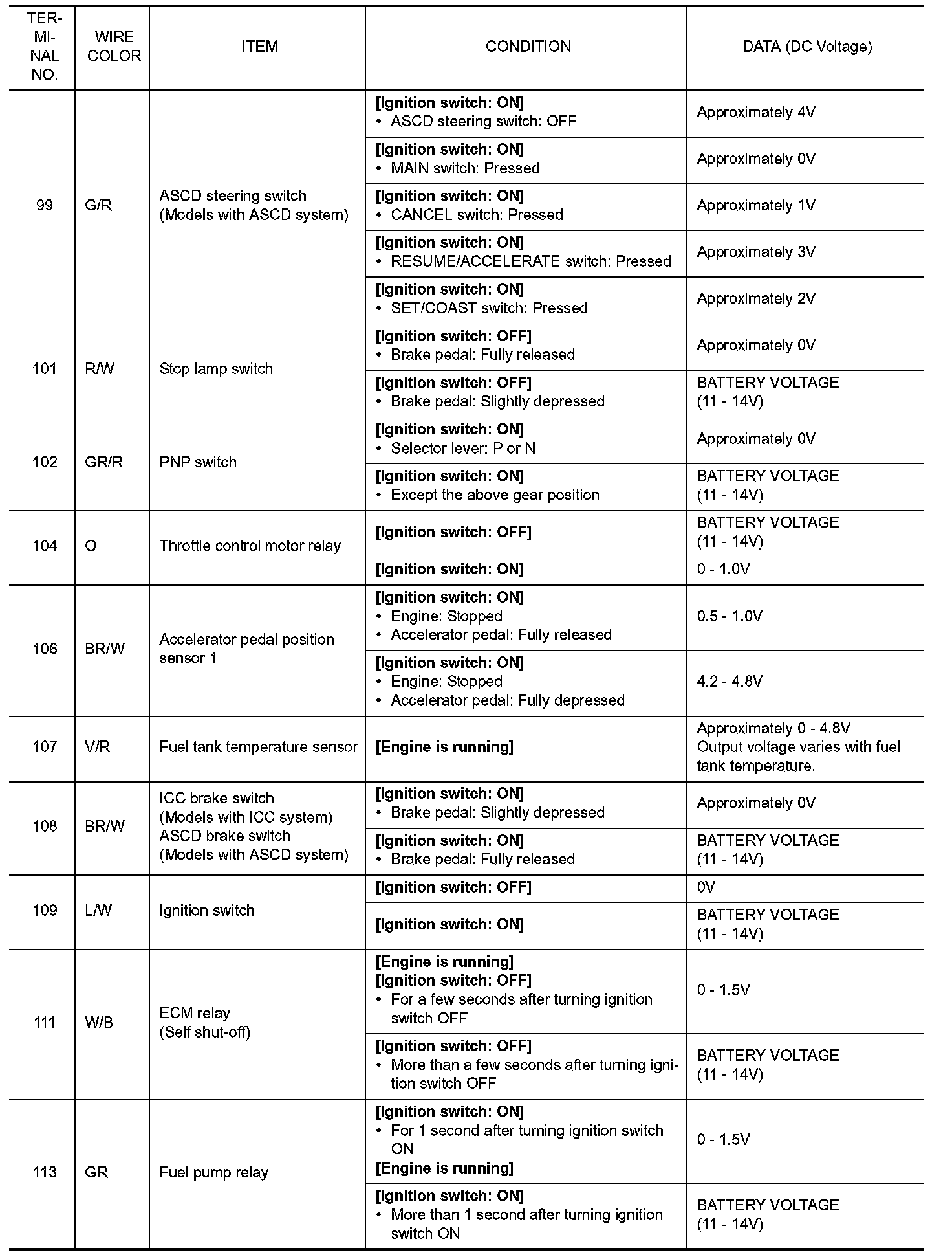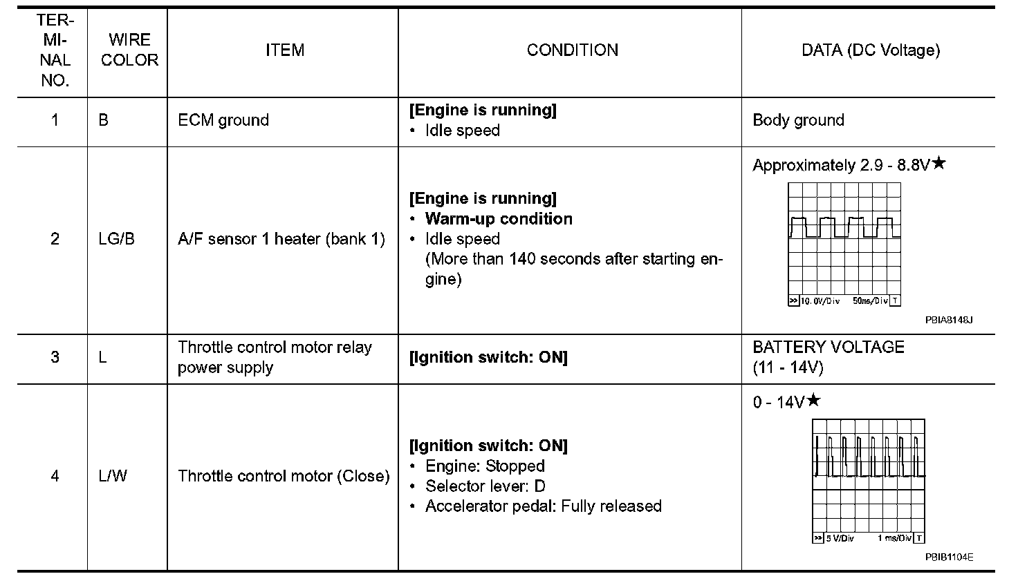 ECM Harness Connector Terminal LayoutECM Terminal and Reference Value