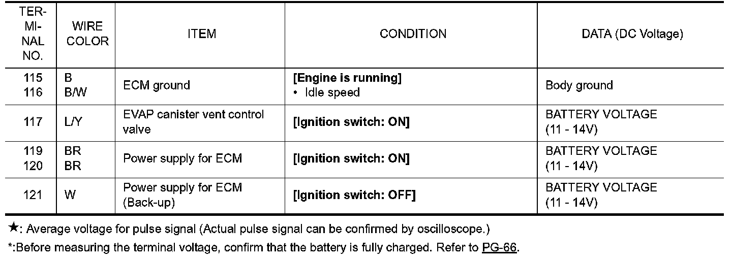 CAUTION: Do not use ECM ground terminals when measuring input/output voltage. Doing so may result in damage to the ECMs transistor. Use a ground other than ECM terminals, such as the ground.