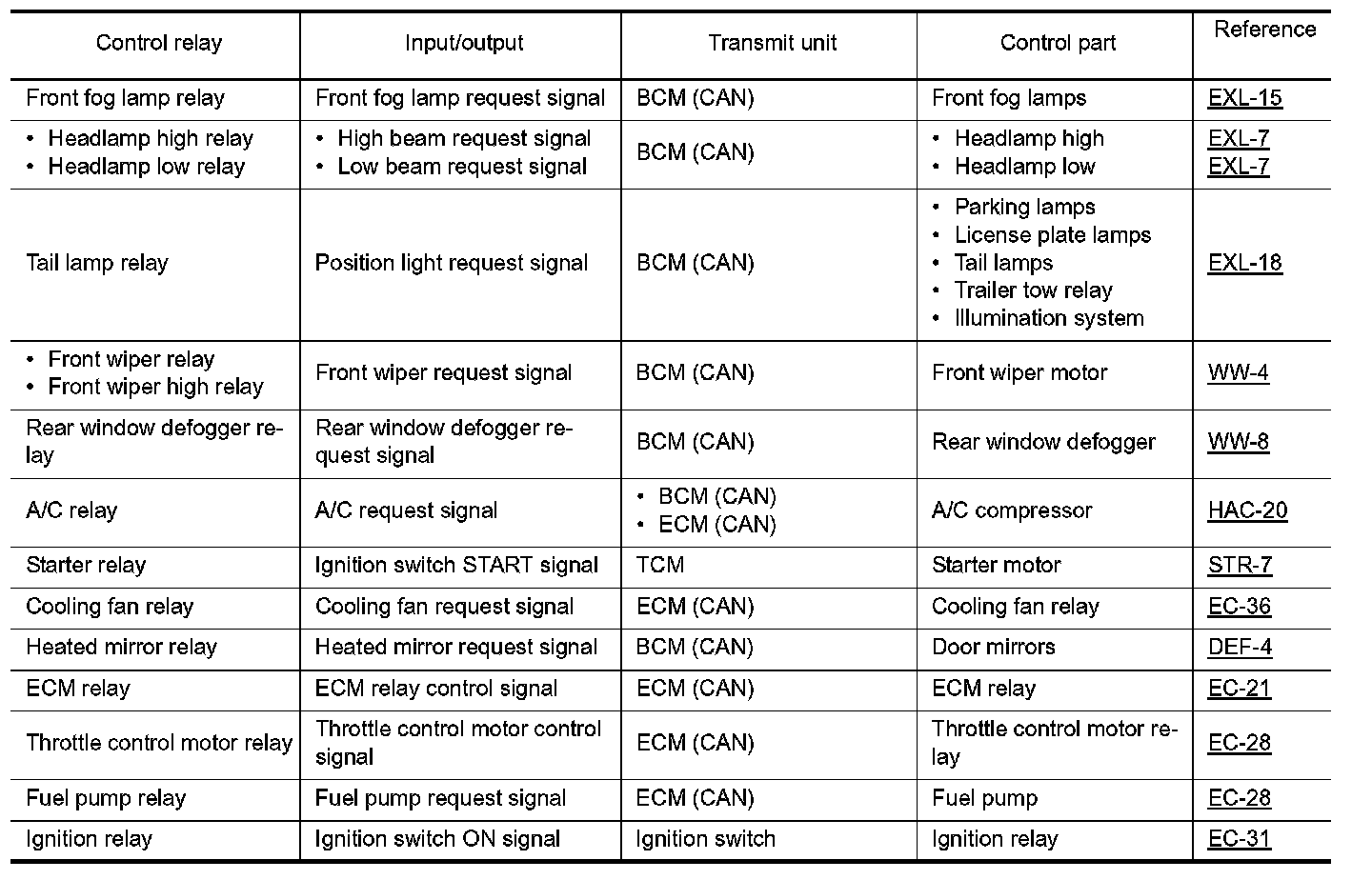 IPDM E/R activates the internal control circuit to perform the relay ON-OFF control according to the input signals from various sensors and the request signals received from control units via CAN communication.
