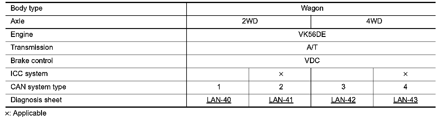 Determine CAN system type from the following specification chart. Then choose the correct diagnosis sheet.
