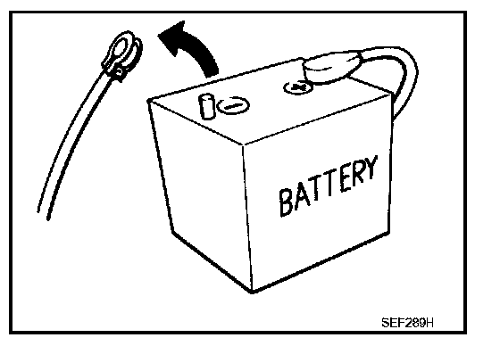 - Before removing parts, turn ignition switch OFF and then disconnect negative battery cable.