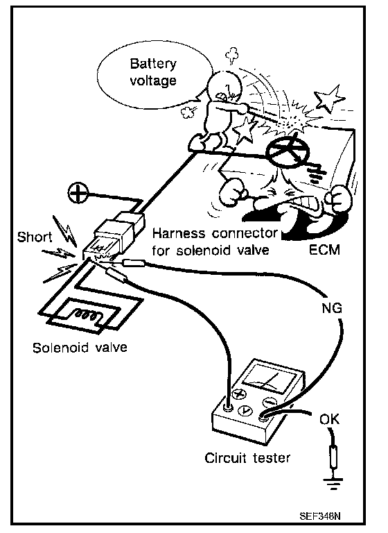 - Do not use ECM ground terminals when measuring input/output voltage. Doing so may result in damage to the ECM's transistor. Use a ground other than ECM terminals, such as the ground.