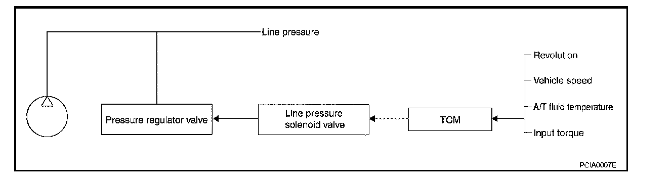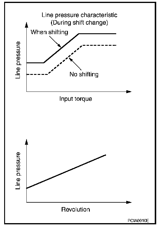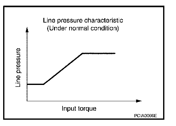 LINE PRESSURE CONTROL IS BASED ON THE TCM LINE PRESSURE CHARACTERISTIC PATTERN