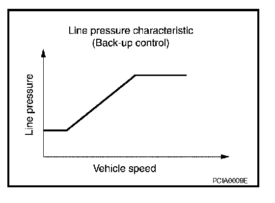 When the A/T fluid temperature drops below the prescribed temperature, in order to speed up the action of each friction element, the line pressure is set higher than the normal line pressure characteristic.