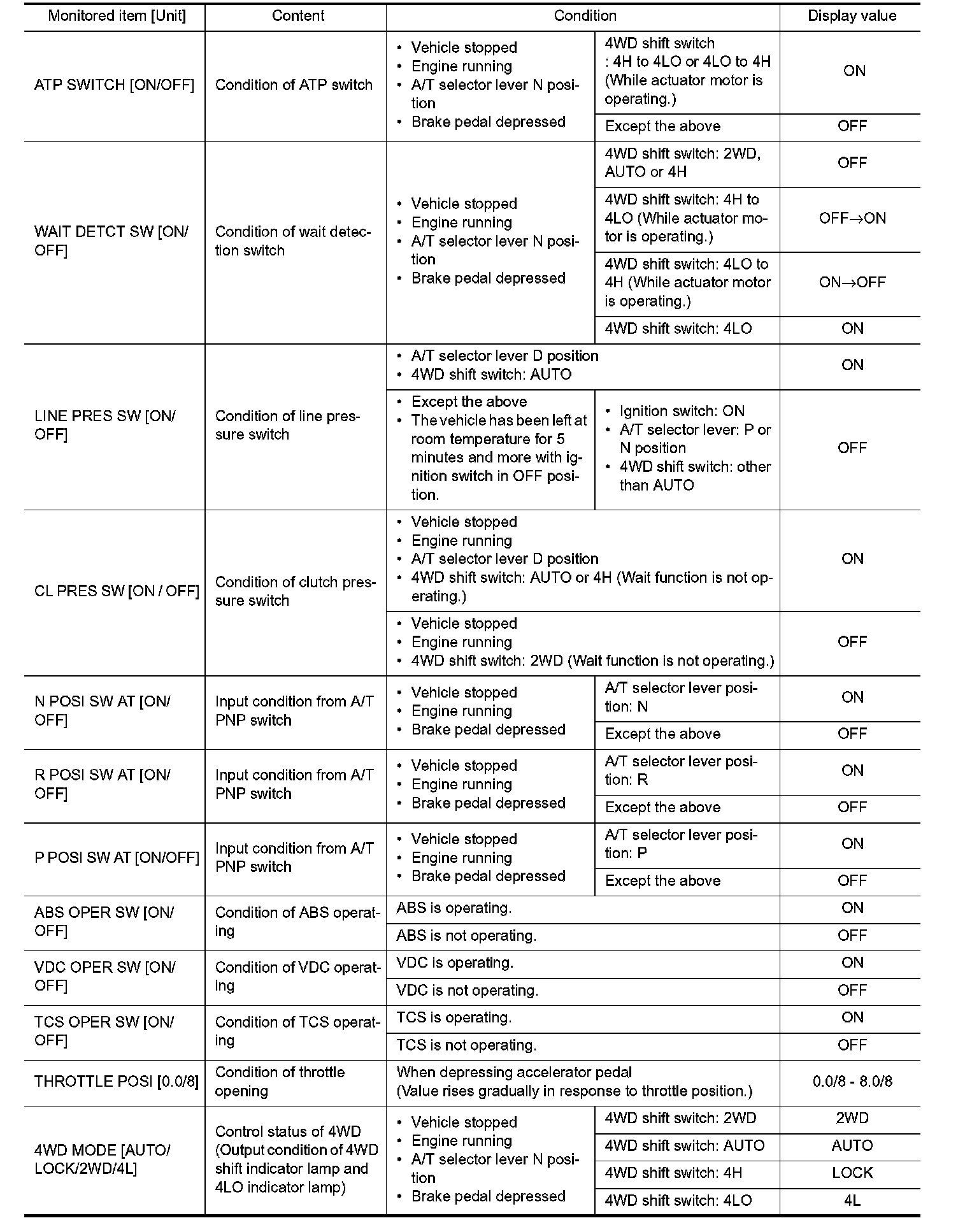 CONSULT-III data monitor item (Part 4):