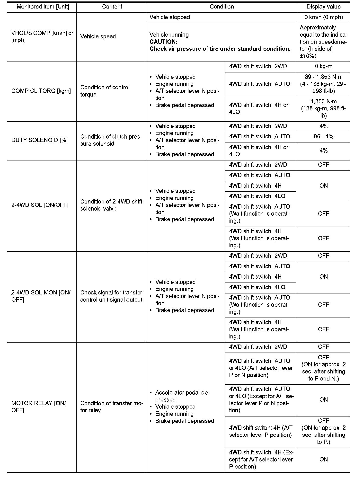VALUE ON THE DIAGNOSIS TOOLCONSULT-III data monitor item (Part 1):