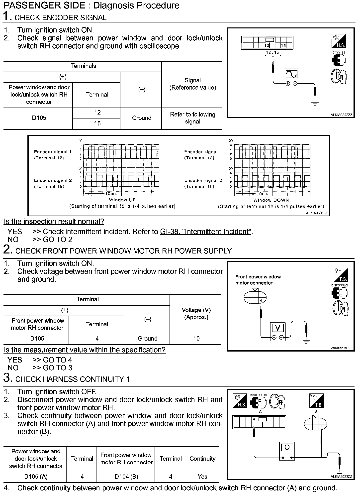 Detects condition of the front power window motor RH operation and transmits to power window and door lock/unlock switch RH as pulse signal.