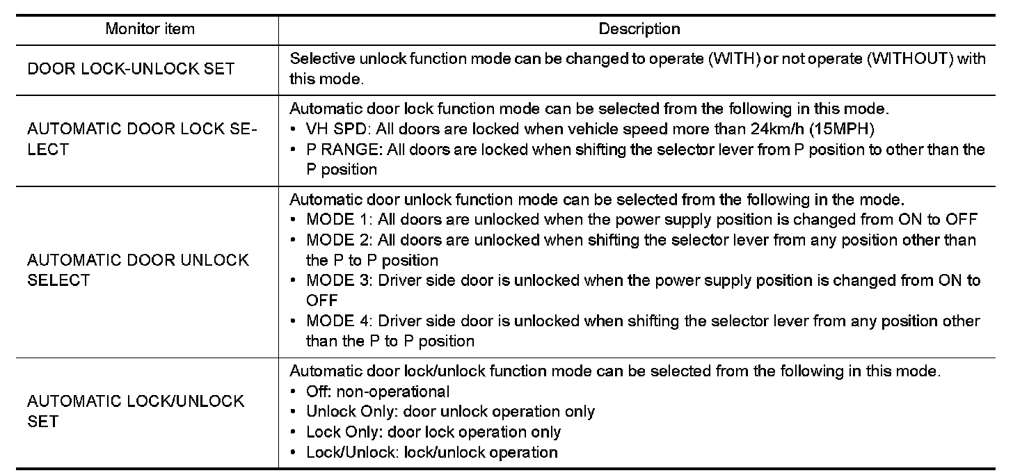DOOR LOCK : CONSULT-III Function (