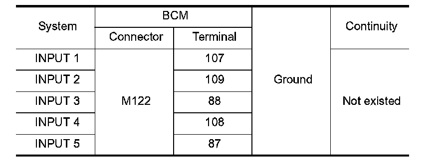 2.CHECK INPUT 1 - 5 SYSTEM CIRCUIT FOR SHORT