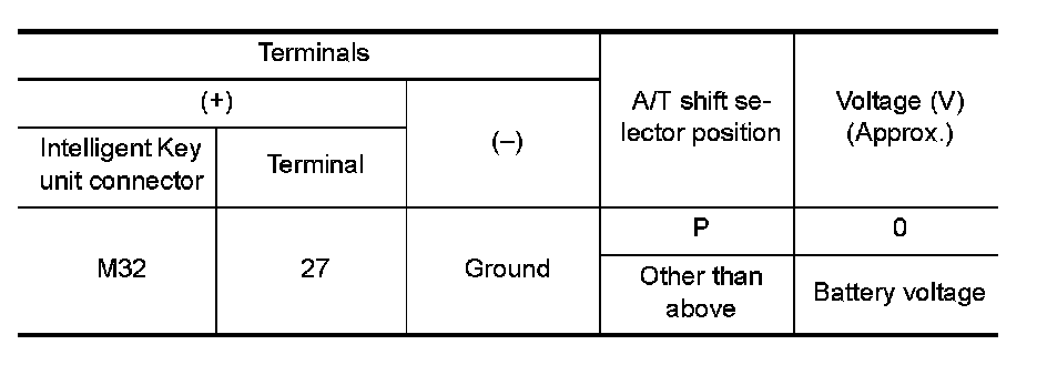NG - Repair or replace harness between Intelligent Key and A/T shift selector.