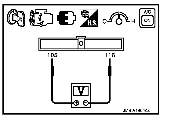 3. Check the voltage between ECM harness connector terminals under the following conditions.