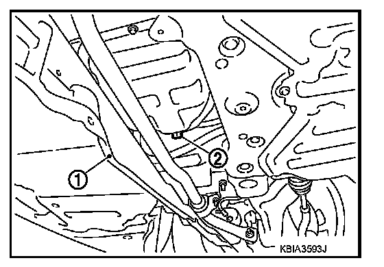 4. Remove mounting bolts, and then pull down the rear of front engine undercover (1) and secure it using clip.