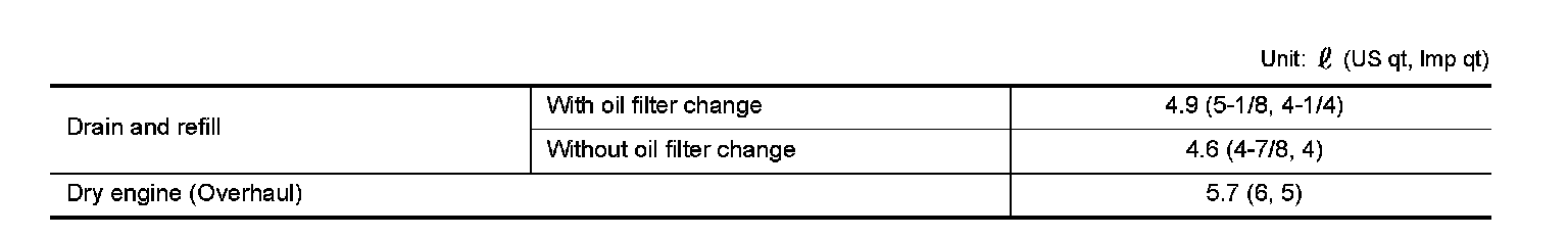 - The refill capacity depends on the engine oil temperature and drain time. Use these specifications for reference only.