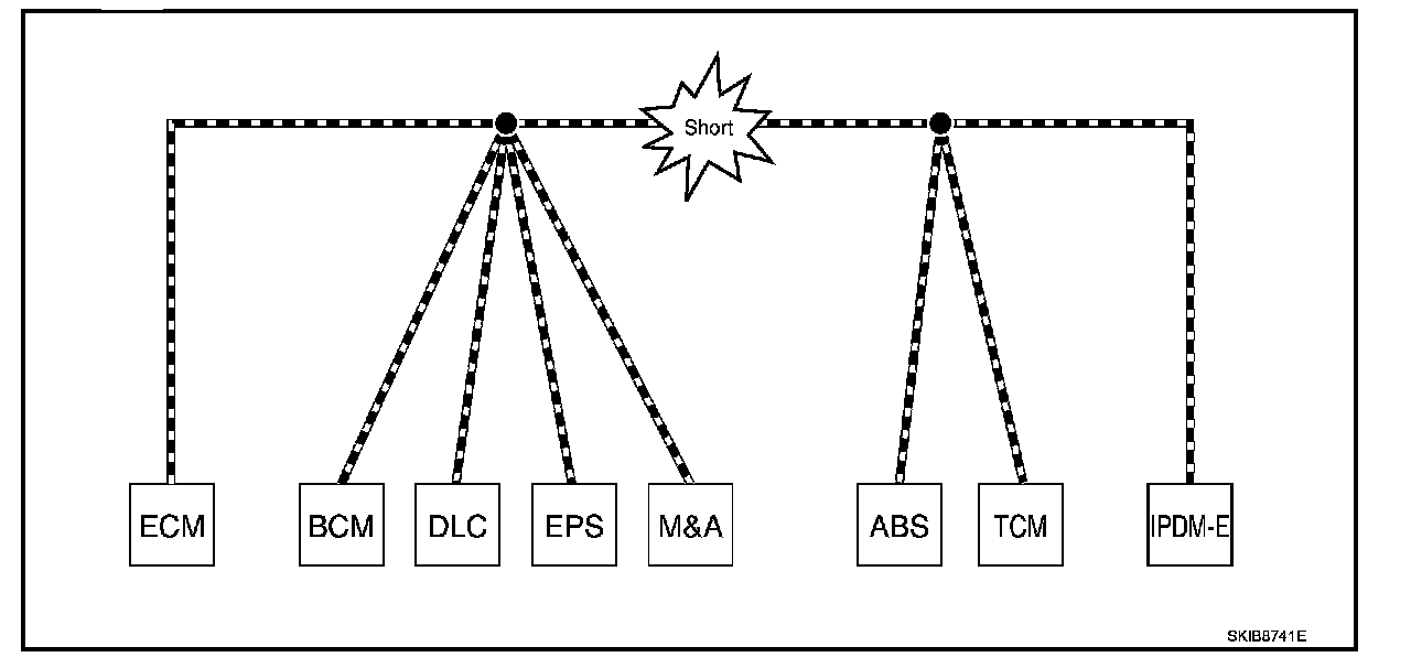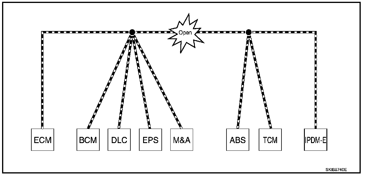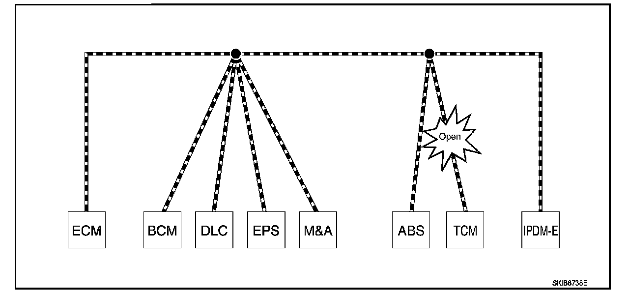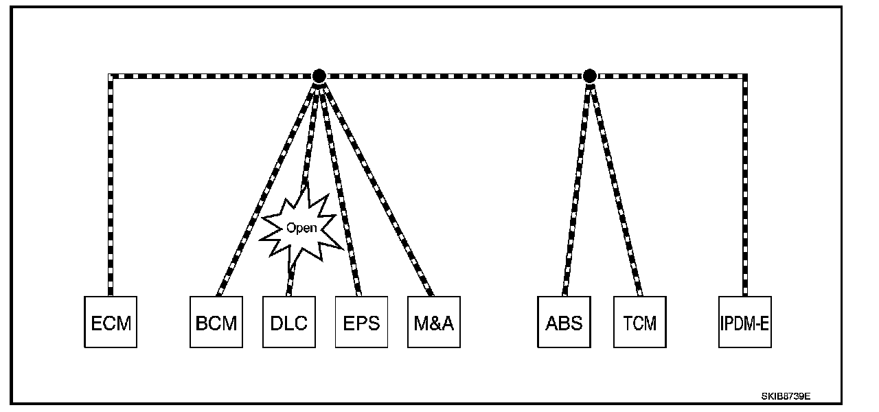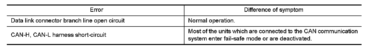 - When data link connector branch line is open, transmission and reception of CAN communication signals are not affected. Therefore, no symptoms occur. However, be sure to repair malfunctioning circuit.