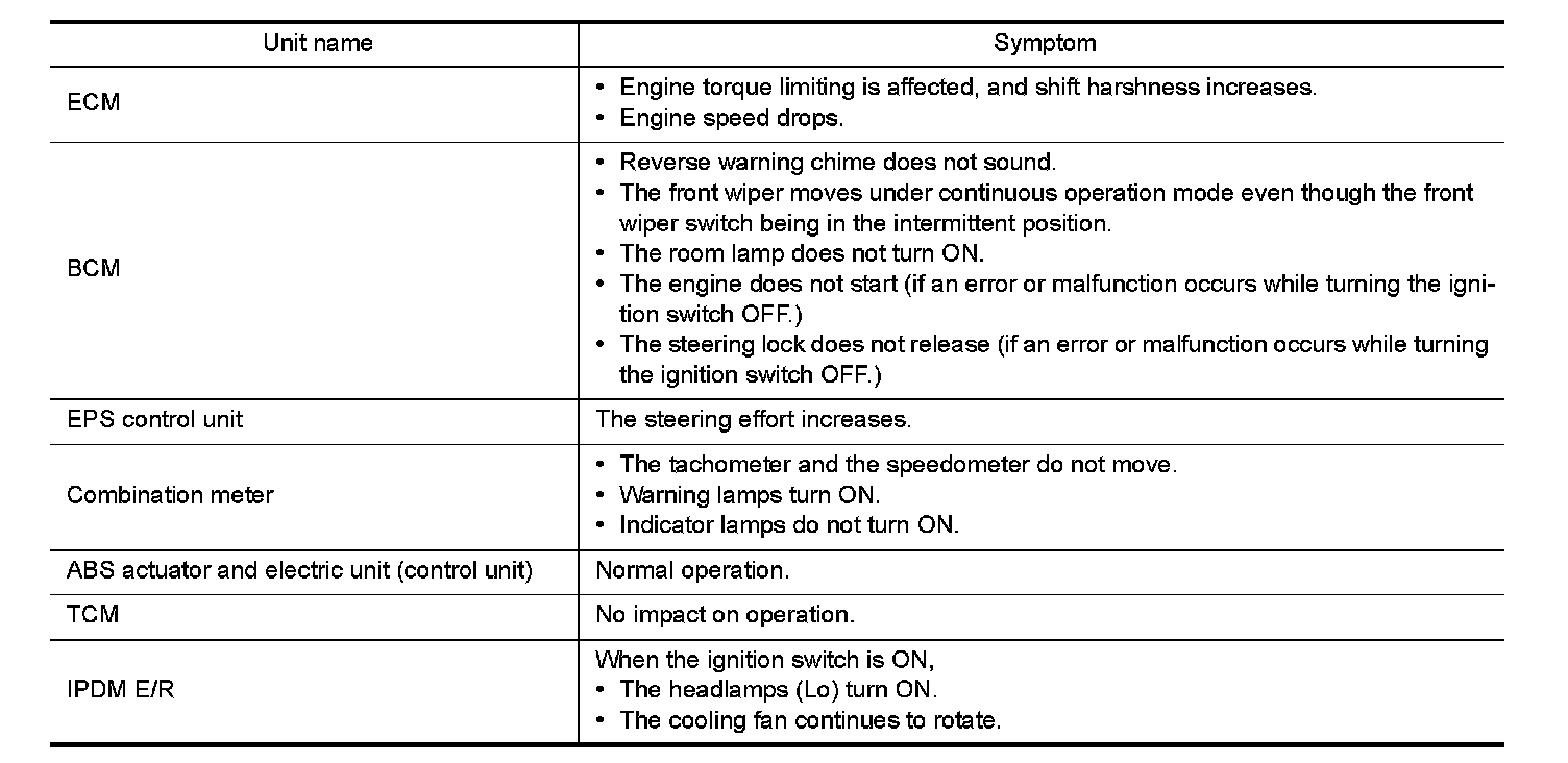 - Each vehicle differs in symptom of each unit under fail-safe mode and CAN communication line wiring.