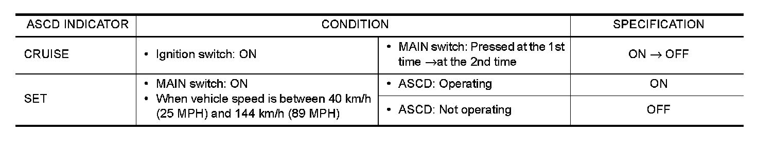 Check ASCD indicator under the following conditions.
