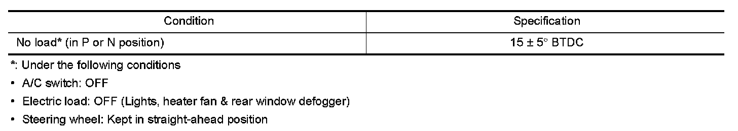 Ignition Timing: Specifications