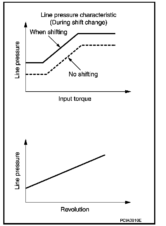 - In order to obtain the most appropriate line pressure characteristic to meet the current driving state, the TCM controls the line pressure solenoid current value and thus controls the line pressure.