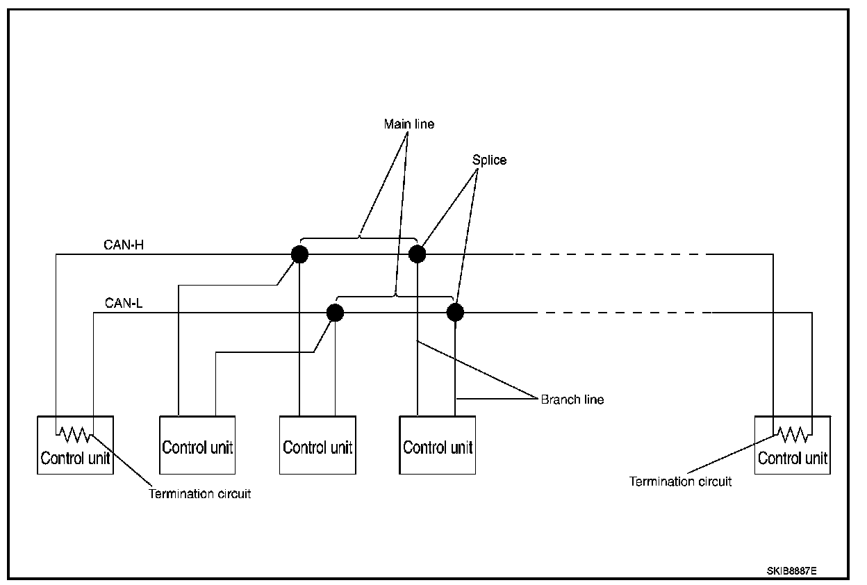 Each control unit passes an electric current to the termination circuits when transmitting CAN communication signal. The termination circuits produce an electrical potential difference between CAN-H and CAN-L. CAN communication system transmits and receives CAN communication signals by the potential difference.
