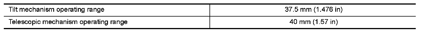 TILT AND TELESCOPIC MECHANISM OPERATING RANGE