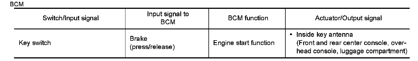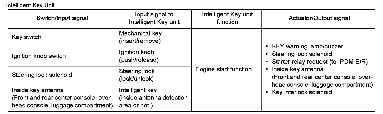 - Refer to System Description for any functions other than engine start function of Intelligent Key system.