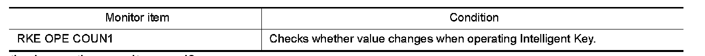 Check remote keyless entry receiver "RKE OPE COUN1" in Data Monitor mode with CONSULT-III.