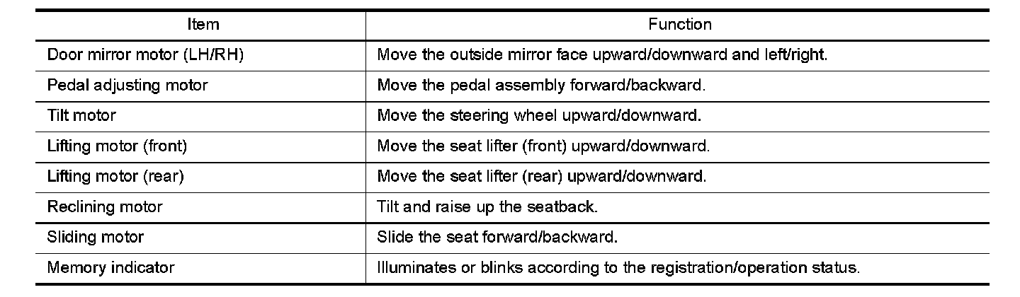 MEMORY FUNCTION : Component Description