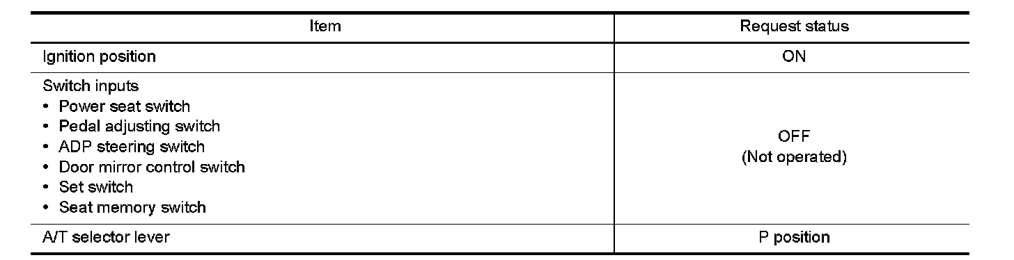 Satisfy all of the following items. The memory function is not performed if these items are not satisfied.