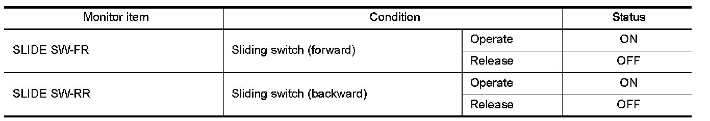 1. Select "SLIDE SW-FR", "SLIDE SW-RR" in "Data monitor" mode with CONSULT-III.