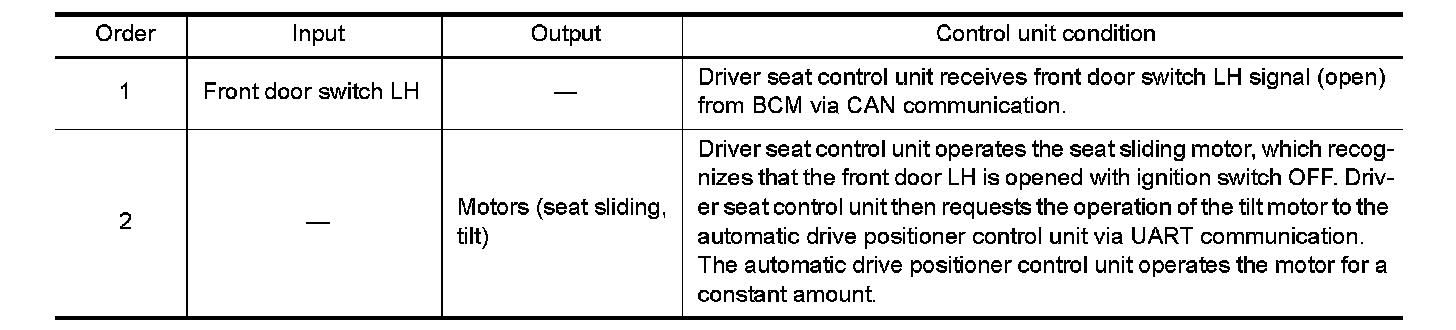 2. Front seat LH and steering wheel will move to the exiting position.