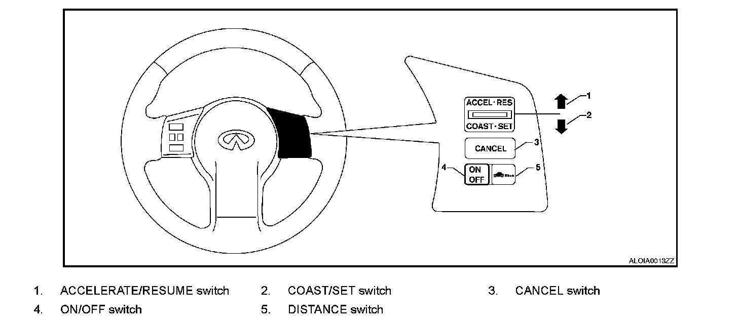 ICC system is operated by MAIN switch and four control switches, all mounted on the steering wheel.