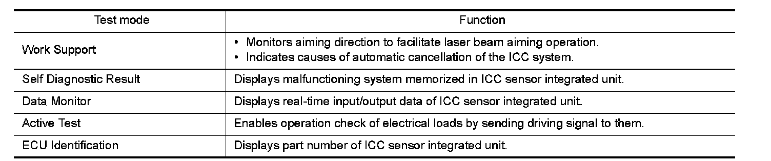 CONSULT-III can display each diagnostic item using the diagnostic test modes shown following.
