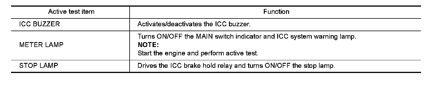 - "Active Test" cannot be started while ICC system warning lamp illuminates.
