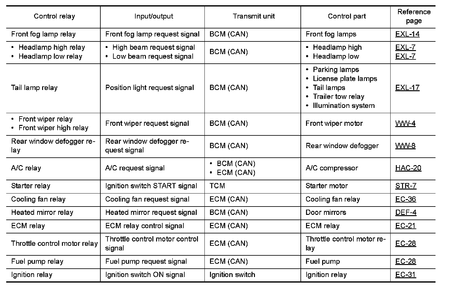 IPDM E/R activates the internal control circuit to perform the relay ON-OFF control according to the input signals from various sensors and the request signals received from control units via CAN communication.
