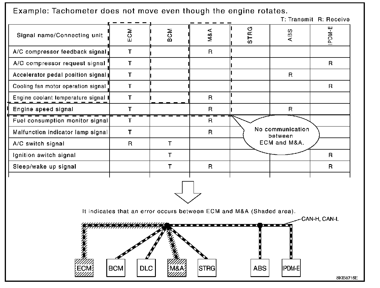 The CAN communication signal chart lists the signals needed for trouble diagnosis. It is useful for detecting the root cause by finding a signal related to the symptom, and by checking transmission and reception unit.