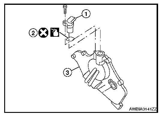 Replace the O-ring (2) of the intake valve timing control position sensor with a new one, then lubricate