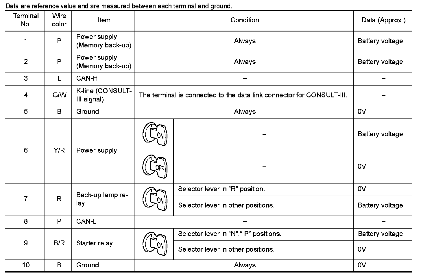 2. Shift schedule (which implies gear position) displayed on CONSULT-III and that indicated in Service Manual may differ slightly. This occurs because of the following reasons: