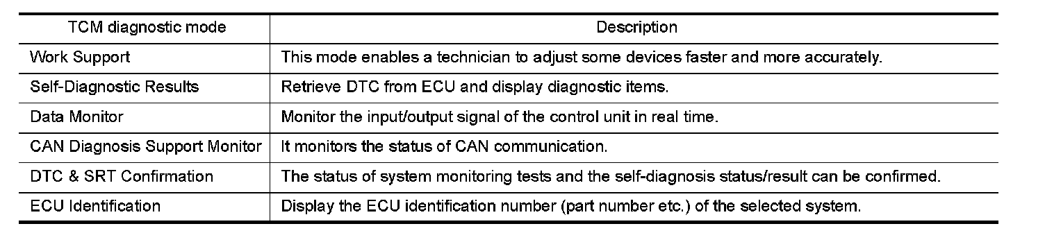 CONSULT-III can display each diagnostic item using the diagnostic test modes shown following.