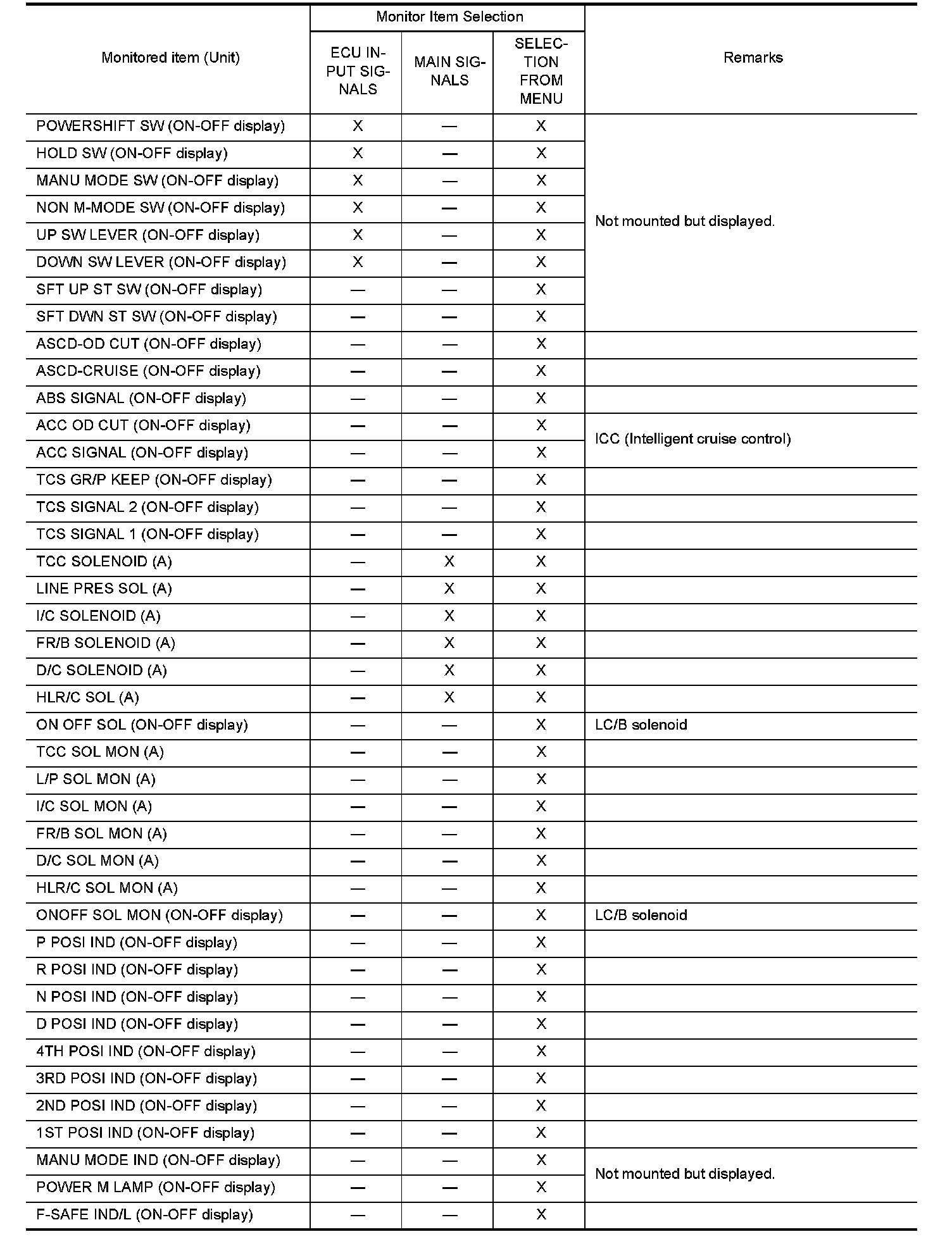 - In order to make it easier to find the cause of hard-to-duplicate malfunctions, malfunction information is stored into the control unit as necessary during use by the user. This memory is not erased no matter how many times the ignition switch is turned ON and OFF.