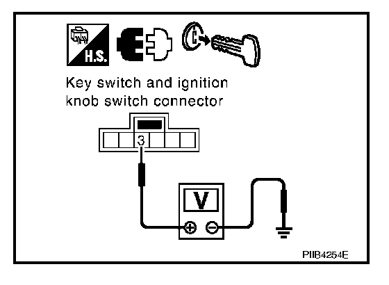 3. Check voltage between key switch and ignition knob switch harness connector M12 terminal 3 and ground.