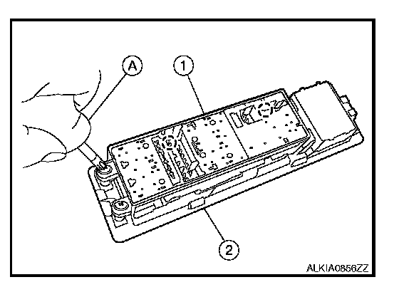 2. Using a suitable tool (A), remove the screws from the power window main switch (1), then release from the finisher (2).