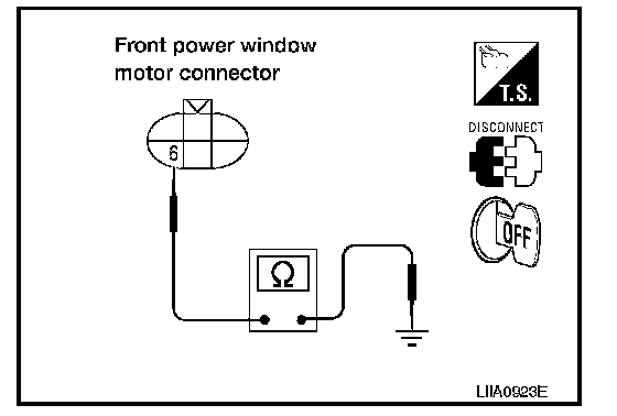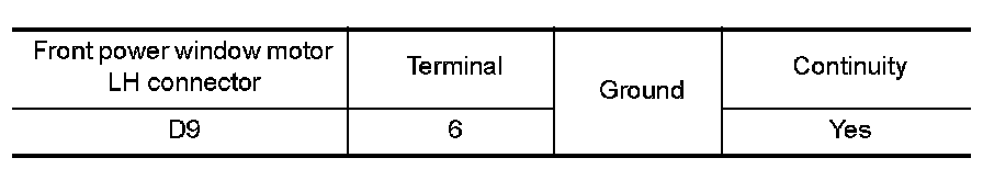 3. Check continuity between front power window motor LH connector and ground.