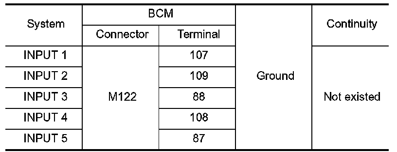 2.CHECK INPUT 1 - 5 SYSTEM CIRCUIT FOR SHORT
